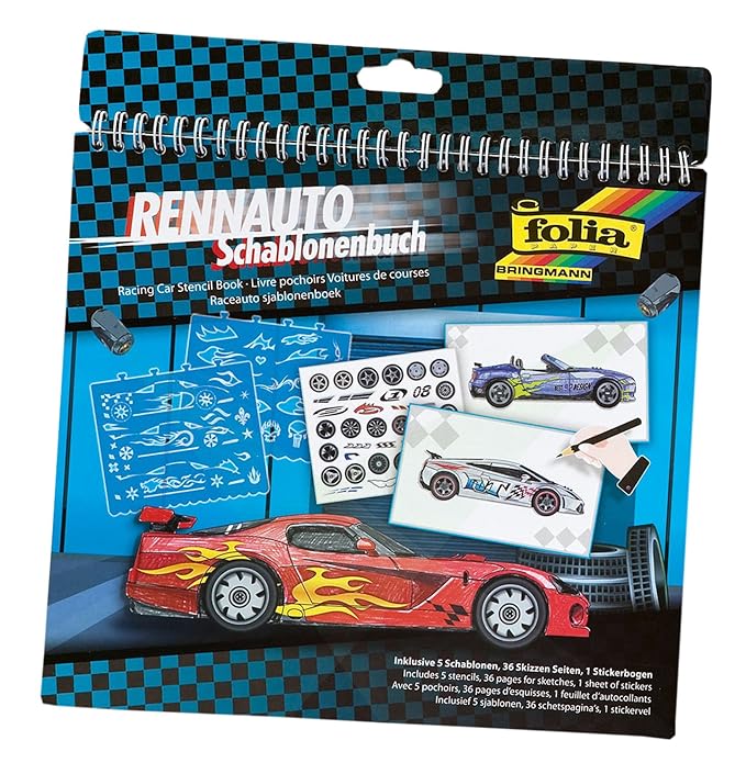 Folia 41202 Schablonenbuch Rennwagen Block Mit 36 Malvorlagen 5 Schablonen Und 1 Stickerbogen Ideal Fur Jungen